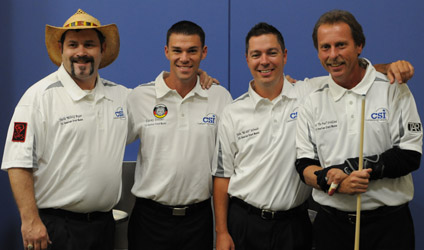 The team is comprised of: BCA Hall of Fame inductee and 5 time U.S. Open 9-Ball Champion Earl “The Pearl” Strickland, 2009 Texas Open winner Charlie “Hillbilly” Bryant, 2006 U.S. Open 9-Ball Champion and 2009 Derby City Classic One Pocket winner John “Mr. 400″ Schmidt, and 2001 U.S. Open 9-Ball Champion Corey Deuel who has also served on the U.S. Mosconi Cup Team 6 times.
