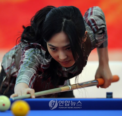<br />Queen of Carom Yu Ram Cha shows she is not just a pool player