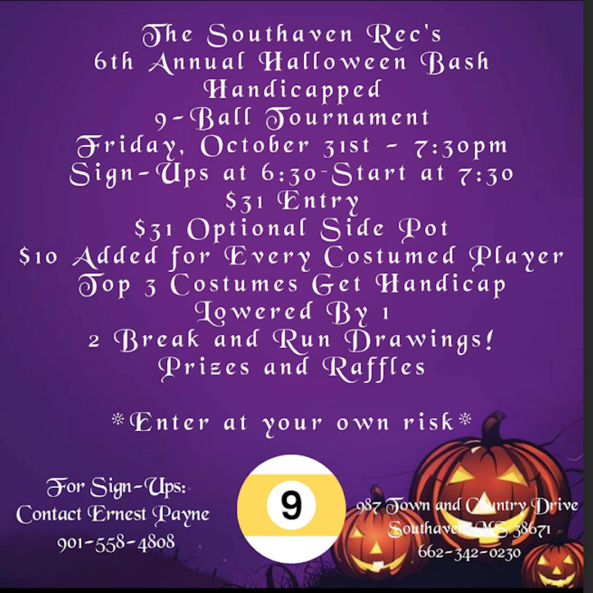Send me your Tournament flyers and i will place them up on this page.